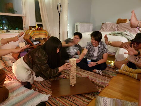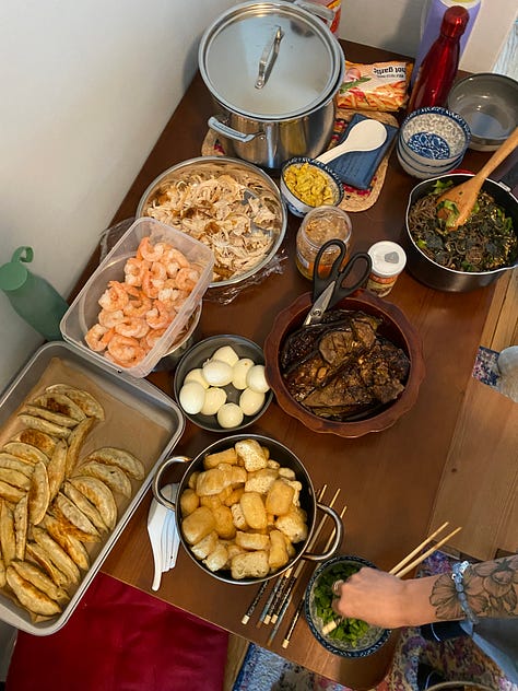 family dinners at my place, the heat of a dining table spread with malaysian food, or thai, or make-your-own-laksa bowls. leaning back into listening and receiving, or showing vulnerability to be understood. bellies and heart full with the kind of cosiness that only many warm bodies in a spacious studio apartment can create.